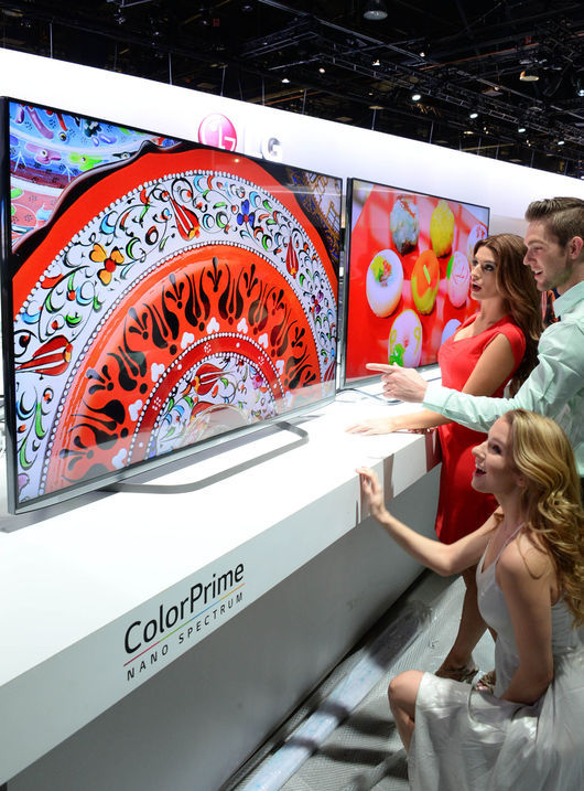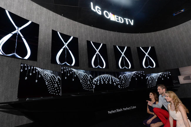 LG전자는 부품과 회로의 부피를 최소화해 하나의 예술품을 연상시키는 ‘아트슬림 디자인’의 ‘곡면 올레드 TV(65EG9600)’를 중심으로 다양한 크기(77형/65형/55형)와 디자인(가변형/곡면/평면)의 올레드TV를 선보인다.