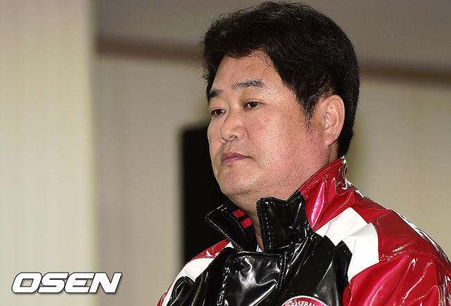5일 오전 서울 잠실야구장에서 열린 프로야구구단 LG 트윈스의 2015년 시무식 행사에서 윤학길 투수코치가 포토타임을 갖고 있다.