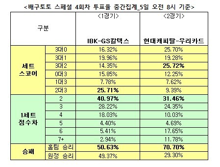 2014-2015시즌 V리그 대상 배구토토 스페셜 4회차 중간집계 결과