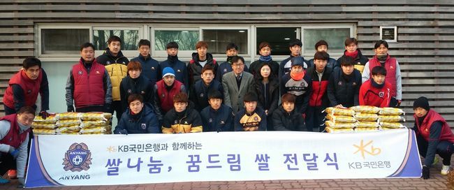 FC안양은 5일 오전 안양 드림스타트 센터에서 이우형 감독을 비롯한 선수단이 모인 가운데 KB국민은행과 함께하는 쌀나눔 꿈드림 쌀 전달식을 진행했다.
