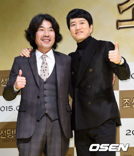 배우 오달수와 김명민이 포토타임을 하고 있다.
