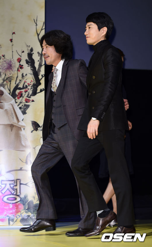 배우 오달수와 김명민이 포토월로 이동하고 있다.