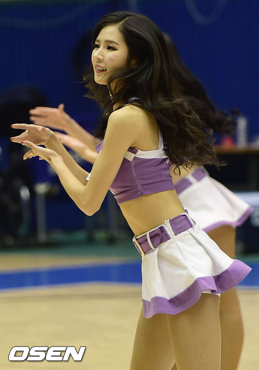 5일 오후 경기도 구리시체육관에서 열린 'KB국민은행 2014-2015 여자프로농구' KDB 생명과 우리은행의 경기, 2쿼터 치어리더 박기량이 멋진 공연을 선보이고 있다.