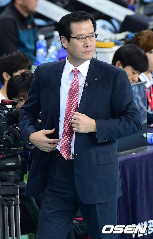 5일 오후 인천 계양체육관에서 열린 '2014-2015 NH농협 V-리그' 대한항공과 LIG 손해보험의 경기 1세트 문용관 감독이 경기를 지켜보고 있다.