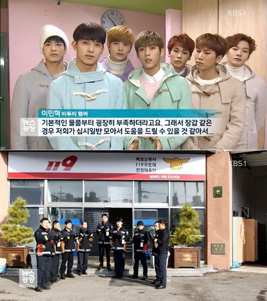이 뉴스는 "소방관들의 열악한 처우를 성토하는 글이 사회적 이슈가 됐다. 이 문제에 한 아이돌 그룹이 주목했다"라며 지난 12월 온라인을 통해 알려진 비투비의 소방장갑 기부에 대한 내용을 심도 있게 리포트했다.