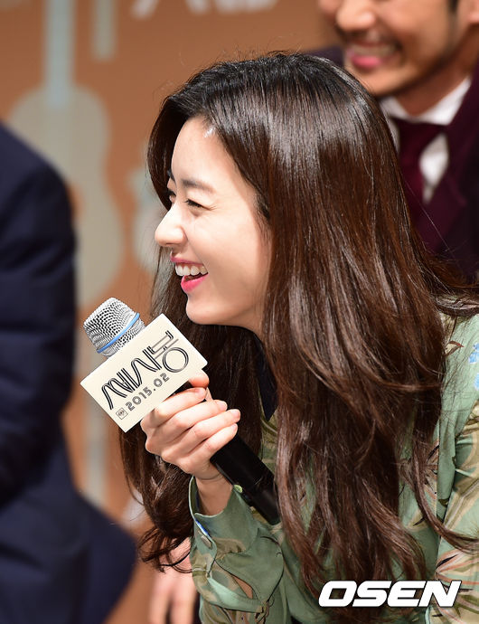 한효주가 간담회 도중 질문에 답을 하며 즐거워하고 있다.