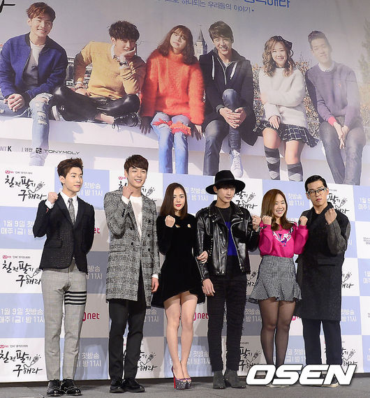 6일 오후 서울 중구 더 플라자 호텔 그랜드볼룸에서 열린 Mnet 뮤직드라마 '칠전팔기 구해라' 제작발표회에서 출연배우들이 포토타임을 갖고 있다.