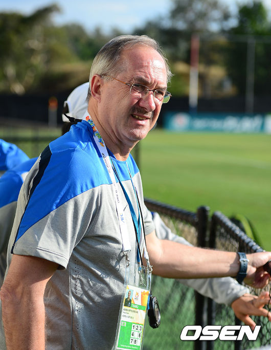 6일 오후 호주 캔버라 디킨 스타디움에서 열린 한국 축구대표팀 훈련에서 슈틸리케 감독이 훈련장으로 입장하고 있다.