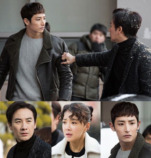이어 제작진은 6일 12화 방송을 앞두고 촬영 스틸사진을 공개했다. 사진을 살펴보면 엄태웅이 이수혁의 옷자락을 붙잡고 대치해 두 사람 사이에 팽팽한 긴장감이 맴돌고 있다. 특히 멀쩡한 이수혁의 모습과는 달리 엄태웅은 어떤 영문인지 온 몸에 가루를 뒤집어쓰고 있고, 이시영은 복잡한 표정을 짓고 있어 방송에 대한 더욱 궁금증을 자아내고 있다. 이에 대해 제작진은 “장희태와 김일리, 김준이 지난 11화에 이어 또 한 번 삼자대면하게 된다. 서로의 갈등이 심화됐던 지난 회와는 달리 이번 삼자대면에서는 장희태가 어떤 결심을 하며 향후 세 사람의 관계에 큰 전환점이 될 것”이라고 설명해 기대감을 더했다.