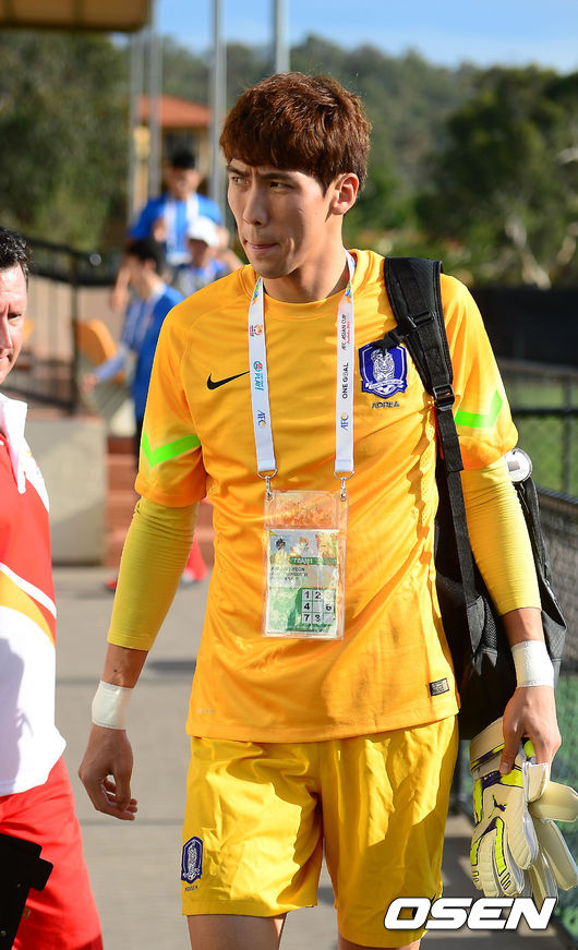 6일 오후 호주 캔버라 디킨 스타디움에서 열린 한국 축구대표팀 훈련에서 김진현이 훈련장으로 들어서고 있다.