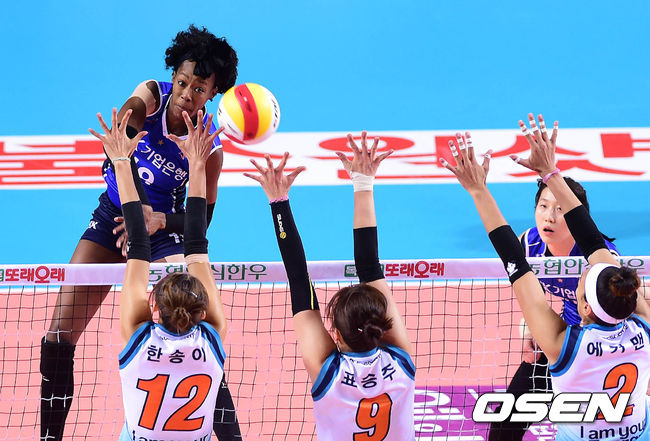 6일 오후 화성시 화성실내체육관에서 열린 '2014-2015 NH농협 V-리그' IBK기업은행과 GS칼텍스의 경기 1세트 데스티니가 공격을 시도하고 있다.