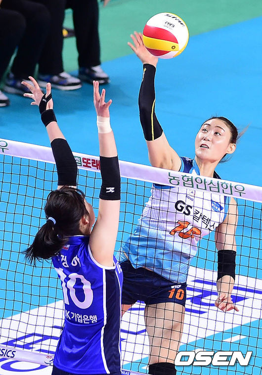 6일 오후 화성시 화성실내체육관에서 열린 '2014-2015 NH농협 V-리그' IBK기업은행과 GS칼텍스의 경기 2세트 배유나가 공격을 시도하고 있다.
