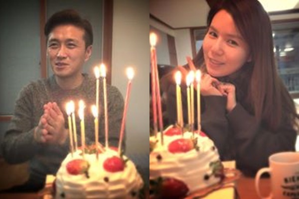 사진 속에는 딸기 케이크를 앞에 두고 손뼉을 치면서 노래하는 진태현과 미모를 뽐내는 박시은의 모습이 담겼다.