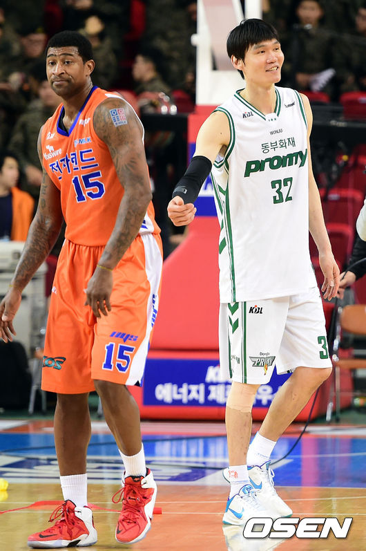 경기종료 후 동부 김주성과 전자랜드 포웰이 악수를 나누고 있다. / soul1014@osen.co.kr