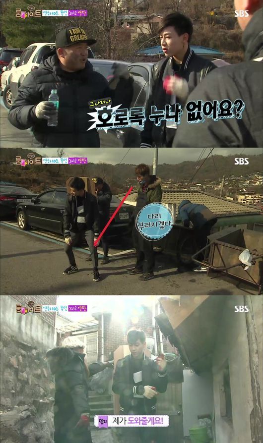 뱀뱀은 지난 6일 방송된 ‘룸메이트’에서 같은 팀 멤버 잭슨의 바비큐 파티를 하자는 거짓말에 속아 연탄 나눔 배달에 나섰다. 그는 등장부터 심상치 않았다. 조세호가 묻지도 따지지도 않고 연탄을 지게에 얹어주려고 하자 “바비큐 하러 가는 거예요?”라고 해맑게 묻고, “호로록 누나 없어요? 국수(주) 누나?”라고 ‘호로록’ 유행어를 만든 이국주를 찾았다.
