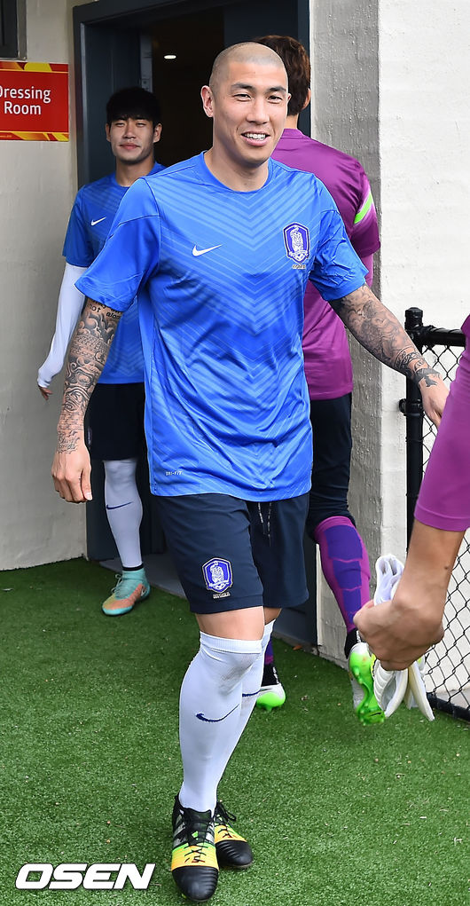 7일 오후 호주 캔버라 디킨 스타디움에서 열린 한국 축구대표팀 훈련에서 차두리가 입장하고 있다.