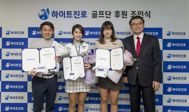 하이트진로는 7일 서울 서초동 사옥에서 열린 '2015년 하이트진로 골프단 후원 조인식'에서 기존 후원선수인 전인지(20)와 재계약을 맺는 한편, 올 시즌부터 일본 JLPGA 무대에 진출하는 '특급루키' 김하늘(26), 그리고 2014 KPGA GS칼텍스 매경오픈 대회에서 우승하며 주목 받은 박준원(28)과 새로이 후원 계약을 맺었다고 발표했다.