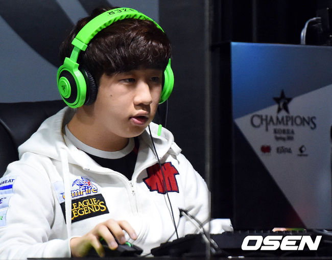7일 오후 서울 용산 e스포츠 스타디움에서 열린 '2015 스베누 LoL 챔피언스 코리아 스프링' 개막전 나진 e엠파이어와 SK텔레콤 T1의 경기에서 나진 이호성이 경기를 펼치고 있다.