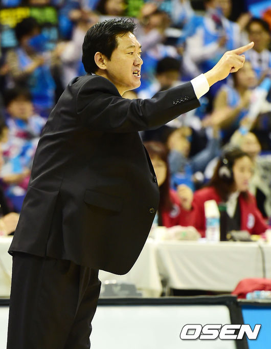 7일 오후 경기도 부천실내체육관에서 열린 'KB국민은행 2014-2015 여자프로농구' 하나외환과 KB스타즈의 경기 2쿼터, 하나외환 박종천 감독이 작전을 지시하고 있다.