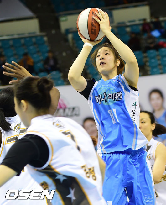 7일 오후 경기도 부천실내체육관에서 열린 'KB국민은행 2014-2015 여자프로농구' 하나외환과 KB스타즈의 경기 3쿼터, 하나외환 이유진이 슛을 하고 있다.