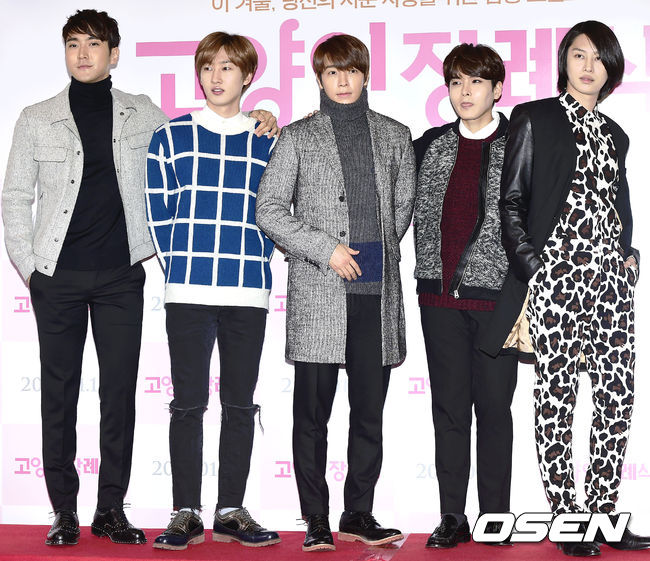 7일 오후 서울 광진구 롯데시네마 건대입구점에서 열린 영화 '고양이 장례식' VIP시사회에서 그룹 슈퍼주니어가 포토타임을 갖고 있다.