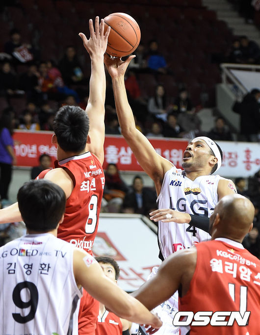 창원 LG는 7일 오후 7시 안양체육관에서 개최된 2014-2015시즌 KCC 프로농구 4라운드서 홈팀 안양 KGC인삼공사를 102-85로 제압했다. 3연승을 달린 LG(15승 20패)는 7위로 전반기를 마쳤다. 공동 5위 KT 및 전자랜드와의 격차는 2.5경기로 줄었다. 5연패에 빠진 KGC(13승 21패)는 8위를 유지했다.
