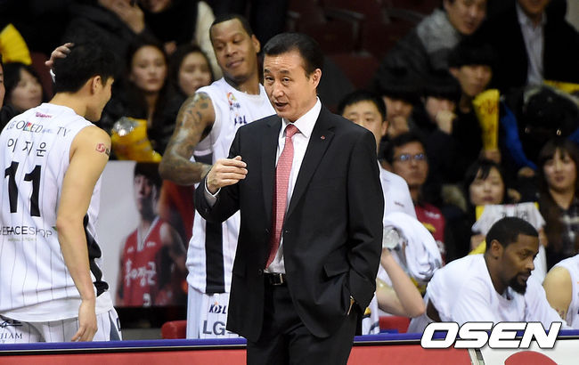 4쿼터 막판 LG 김진 감독이 선수들에게 작전 지시를 내리고 있다./dreamer@osen.co.kr