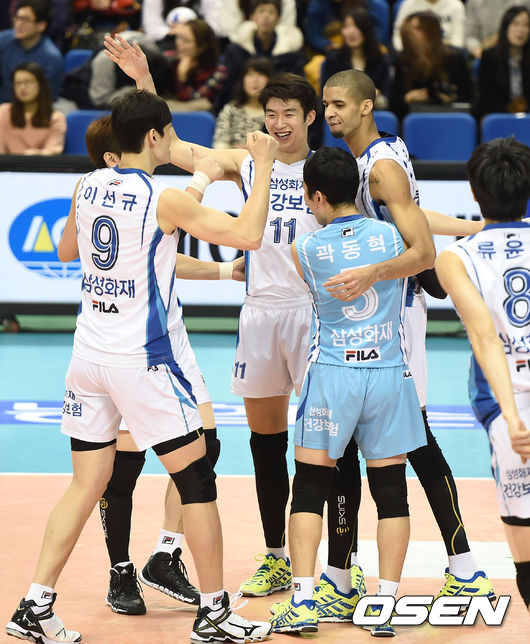 경기 종료 후 삼성화재 선수들이 승리의 기쁨을 나누고 있다. /sunday@osen.co.kr