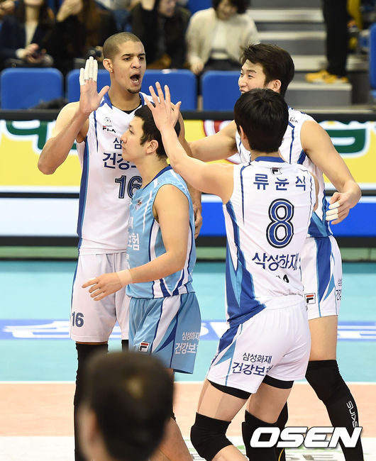 삼성화재는 7일 대전 충무체육관에서 열린 2014-2015 NH농협 V-리그 남자부 4라운드 한국전력과의 경기에서 세트 스코어 3-1(25-21, 25-20, 18-25, 25-22)로 승리했다. 이날 승리한 삼성화재는 파죽의 6연승을 달리며 시즌 전적 17승 4패(승점 50)로 1위 독주체제를 굳건히 했다.