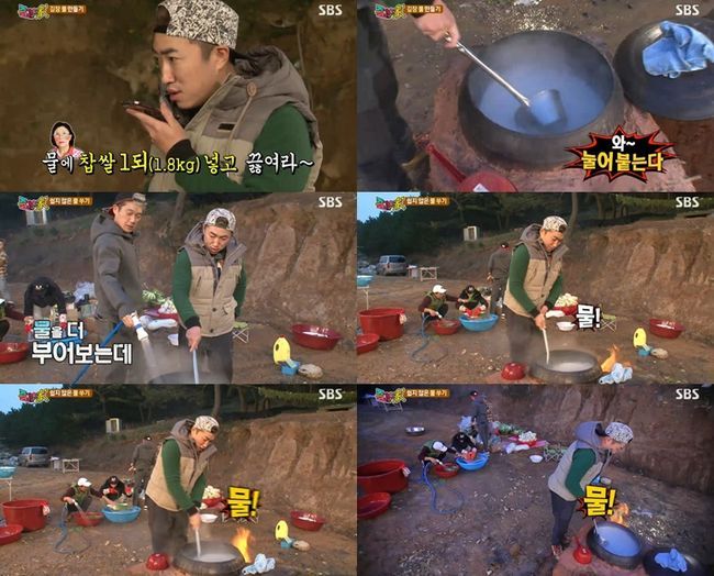 하지만 이는 어머니의 간단한 설명만큼 쉽지는 않았다. 강한 불에 의해 순식간에 풀이 엉겨붙어 장동민을 당황케 한 것. 결국 물을 계속 추가하며 풀을 묽어지게 만들 수 밖에 없었다. 이에 장동민은 수시로 목청껏 "물! 물! 물!"을 외쳐 웃음을 자아냈다.