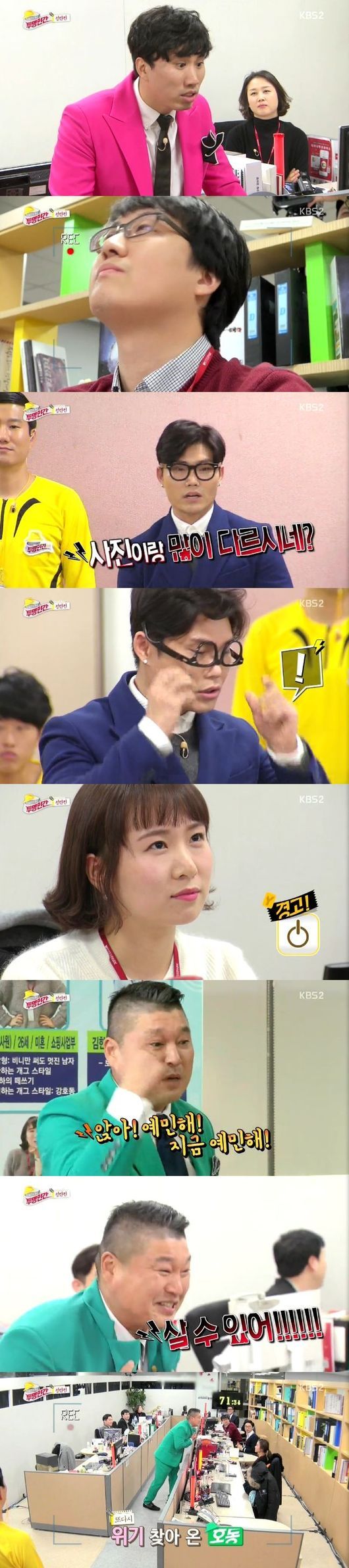 이어 그 다음 타자로 등장한 멤버는 강호동. 첫방송부터 다른 멤버들과 함께 긴장했던 그는 이내 들어가 특유의 에너지 넘치는 몸동작으로 웃음을 줬다. 그러나 상대는 얼음을 상태. 이에 강호동은 "NG 났다고요?"라고 말하며 지능형 수법을 시도했고, 그의 발연기에 멤버들은 "왜 저러느냐"라고 타박을 하기도 했다.