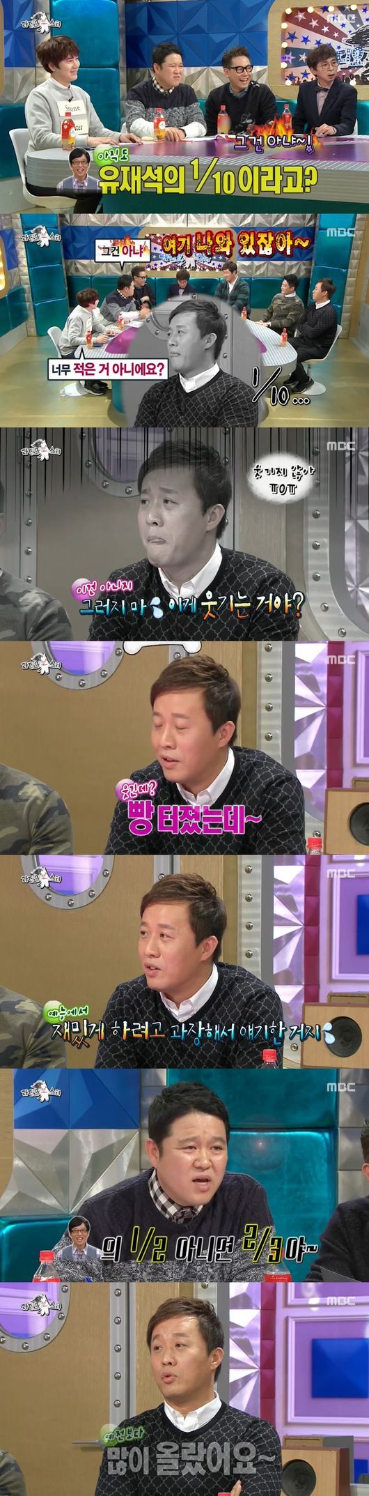 이날 정준하는 “아직도 출연료가 유재석의 10분의 1이냐”는 질문에 “그건 아니다. ‘무도’에서 재밌게 하려고 과장한 거다”고 말했다.