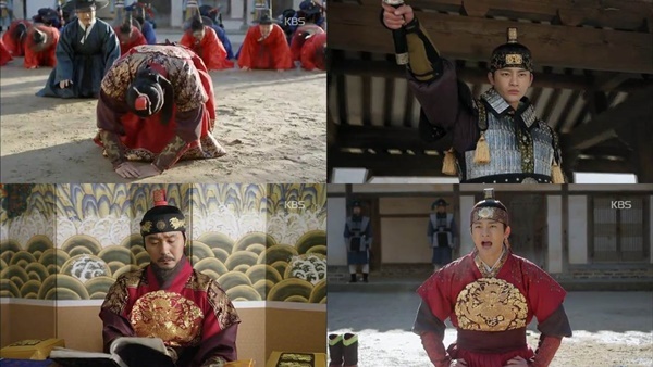KBS 2TV 특별기획드라마 ‘왕의 얼굴’ 14회에서는 명나라 장수에 농락당하고 광해(서인국 분)에 대한 질투심에 양위를 선포하는 선조(이성재 분)의 모습이 그려졌다.