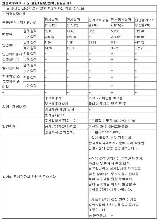 잠정 실적은 한국채택 국제회계기준(IFRS)에 의거해 추정한 결과. 아직 결산이 종료되지 않은 가운데 투자자들의 편의를 돕는 차원에서 제공되는 것이다.