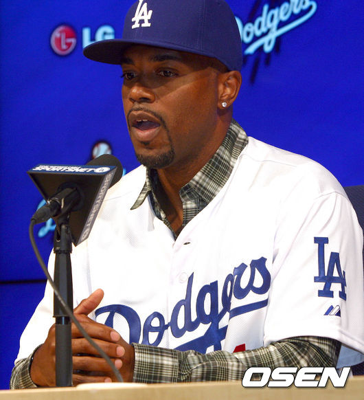 [OSEN=다저스타디움(LA 미국 캘리포니아주), 박승현 특파원]LA 다저스에 입단한 내야수 지미 롤린스가 8일(이하 한국시간) 다저스타디움에서 입단 기자회견을 가졌다. 롤린스는 지난 12월 다저스로 트레이드 됐다. 이날 회견에서 “월드시리즈가 아니면 실패인가?”라는 질문에 “당연하다”고 답해 새 팀에서의 의욕을 불태웠다. /nangapa@osen.co.kr