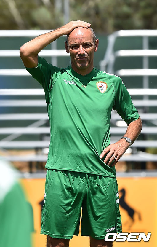 8일 오후 호주 캔버라 맥켈러 파크에서 열린 오만 축구대표팀 훈련때 오만의 폴 르갱 감독이 환하게 미소짓고 있다.