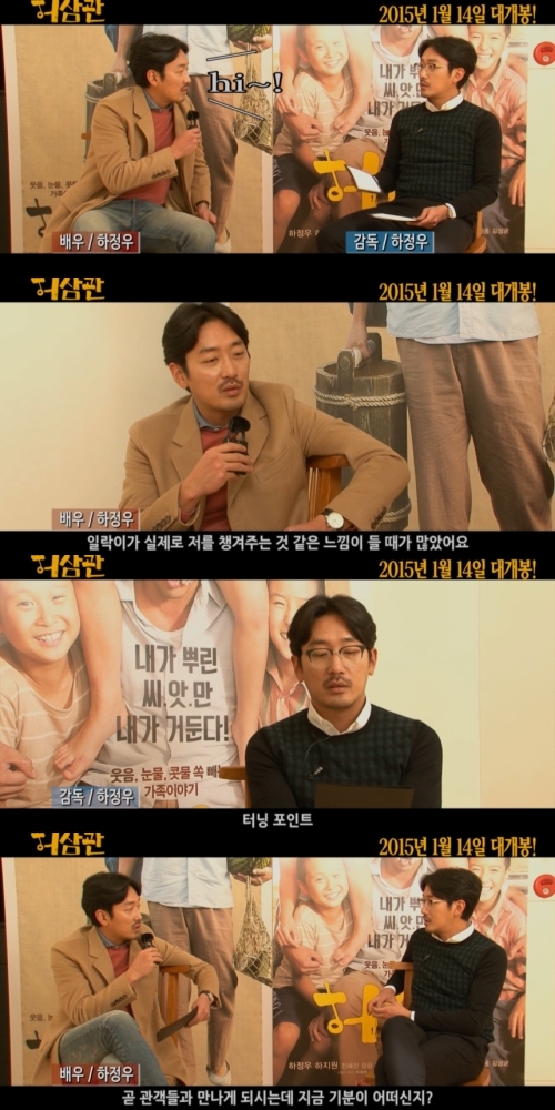이어진 스피드 질문에서 감독 하정우는 '허삼관' 촬영 현장에서 가장 편애한 사람으로는 막내 아들 삼락이를 꼽았다. 자신에게 영화 '허삼관'이 가지는 의미를 묻는 질문에 "터닝포인트"라고 답했다.
