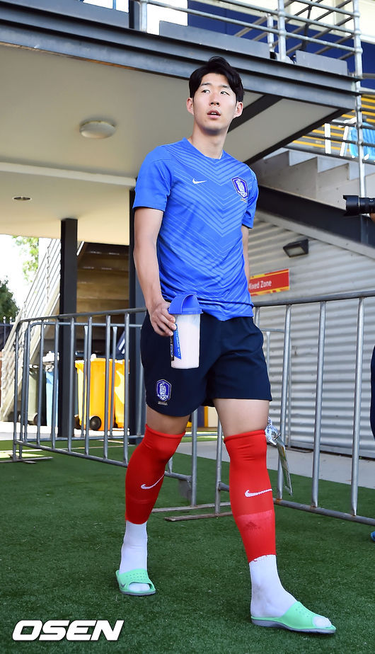 8일 오후 호주 캔버라 맥켈러 파크에서 열린 오만 축구대표팀 훈련때 손흥민이 훈련장으로 들어서고 있다.