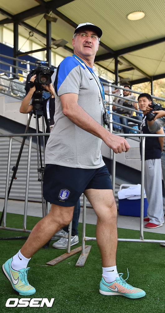 8일 오후 호주 캔버라 맥켈러 파크에서 열린 오만 축구대표팀 훈련때 슈틸리케 감독이 훈련장으로 들어서고 있다.