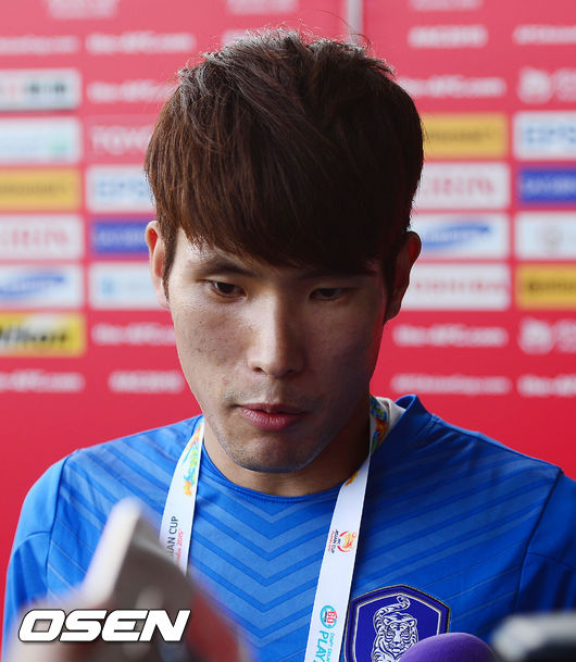 8일 오후 호주 캔버라 맥켈러 파크에서 열린 한국 축구대표팀 훈련때 한국영이 인터뷰를 하고 있다.