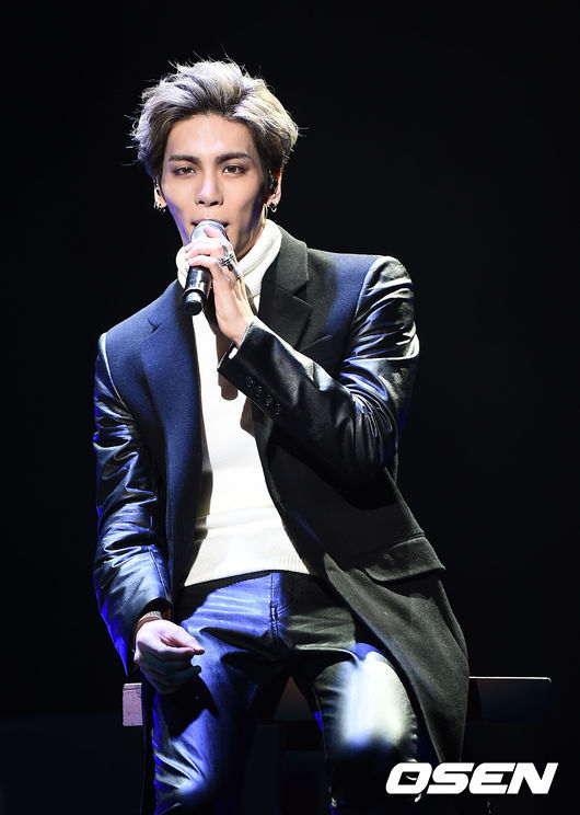 종현은 8일 오후 서울 삼성동에 위치한 복합문화공간 SM타운 코엑스 아티움에서 첫 솔로 미니앨범 ‘베이스(BASE)’ 발매 기념 쇼케이스를 갖고 신곡의 첫 라이브 무대를 선보였다.