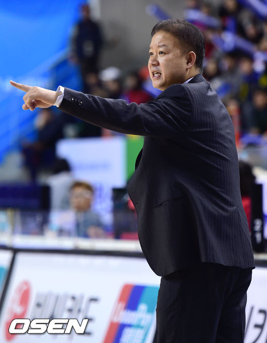 8일 오후 경기도 용인실내체육관에서 열린 'KB국민은행 2014-2015 여자프로농구' 용인 삼성과 인천 신한은행의 경기 2쿼터, 하나외환 정인교 감독이 선수들에게 작전을 지시하고 있다.