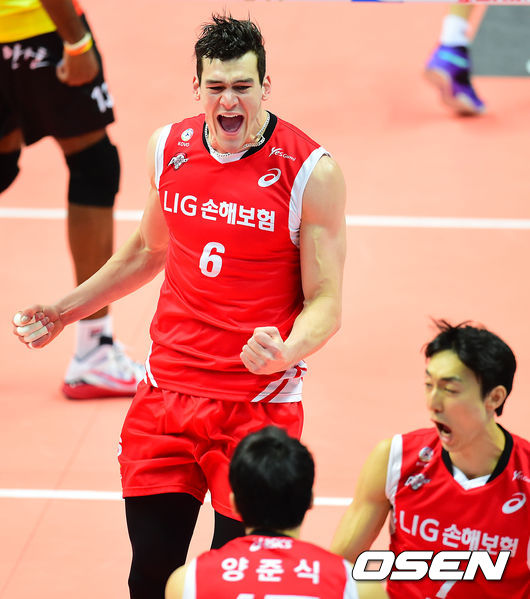 8일 오후 경기도 안산 상록수체육관에서 'NH농협 2014~2015 V-리그' 남자부 OK저축은행과 LIG손해보험의 경기가 열렸다.