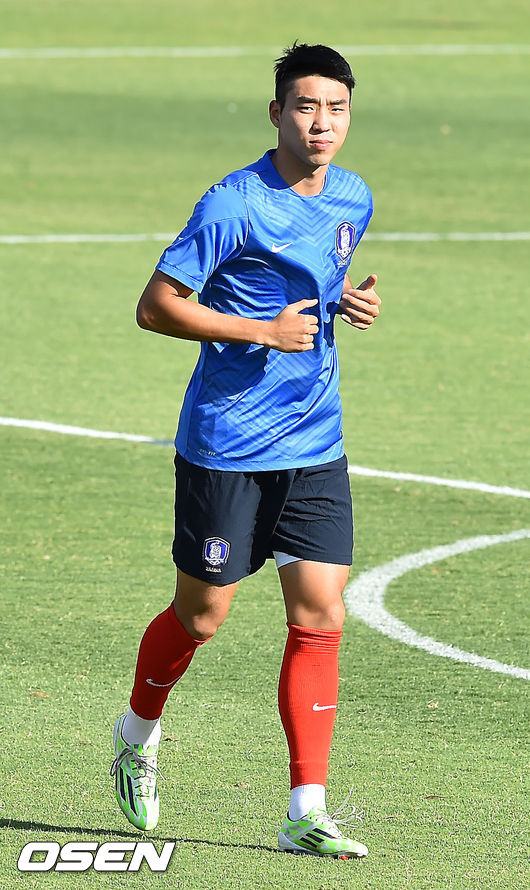 8일 오후 호주 캔버라 맥켈러 파크에서 열린 한국 축구대표팀 훈련때 이정협이 런닝훈련을 하고 있다.