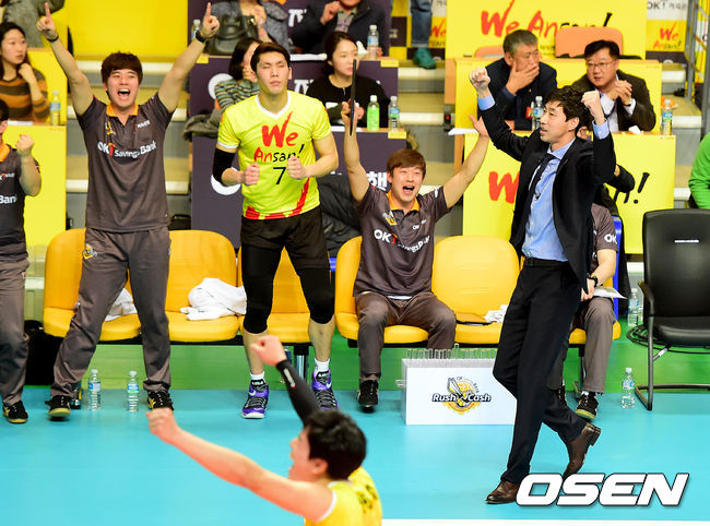 안산 OK저축은행 러시앤캐시가 구미 LIG손해보험 그레이터스를 꺾고 귀중한 승점 3점을 추가했다.