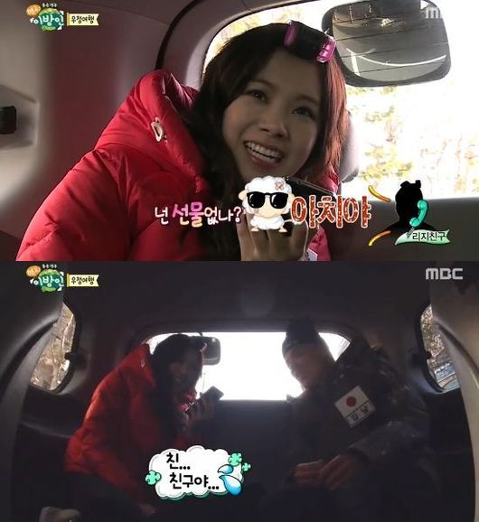 리지는 방송 촬영 중임을 말하지 않고 "사랑스러운 내 친군데"라고 말했으나, 친구는 "니 진짜 선물 없나. 이 양아치야"라고 응수했다.
