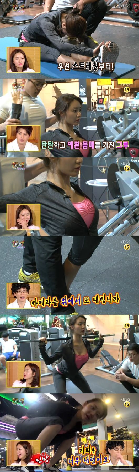 이날 한그루는 선크림만 바르고 운동에 나섰다. 무용으로 다져진 그녀이 유연성은 스트레칭을 할 때 더욱 돋보였다.