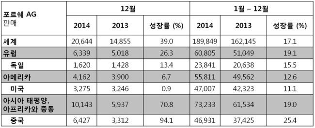 2014년 포르쉐는 모든 지역과 시장에서 전년 대비 차량 판매가 증가했다.