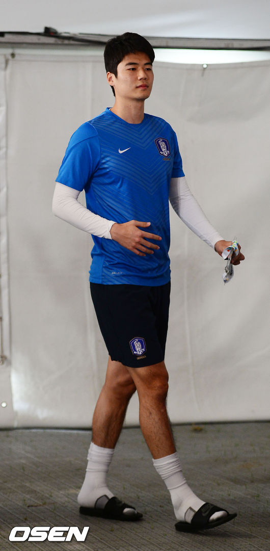 9일 오후 호주 캔버라 스타디움서 열린 한국 축구대표팀 훈련전 인터뷰때 기성용이 기자회견장으로 입장하고 있다.