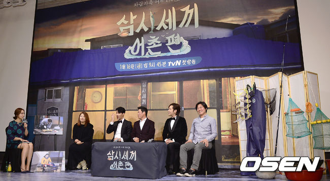 9일 오후 서울 논현동 임페리얼 호텔에서 열린 tvN 예능프로그램 '삼시세끼 어촌편' 제작발표회에서 출연진들과 PD들이 질의응답 시간을 갖고 있다.